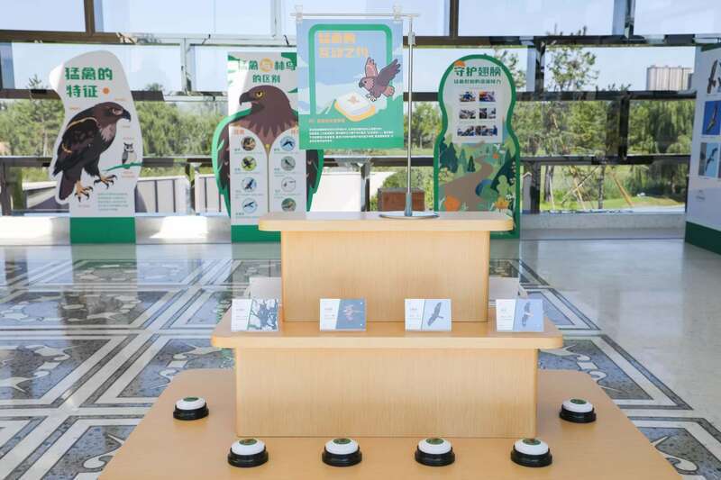 在“路县寻迹·百望观鹰”活动现场,观众能通过标本、图文了解猛禽共同的生理结构特征:它们拥有锋利的钩状喙、尖锐的趾爪、极佳的视力、发达的听觉、宽大或尖长的翅膀以及强壮的肌肉与骨骼。场内还有鸟类声音互动体验,让观众聆听猛禽划过苍穹的叫声。